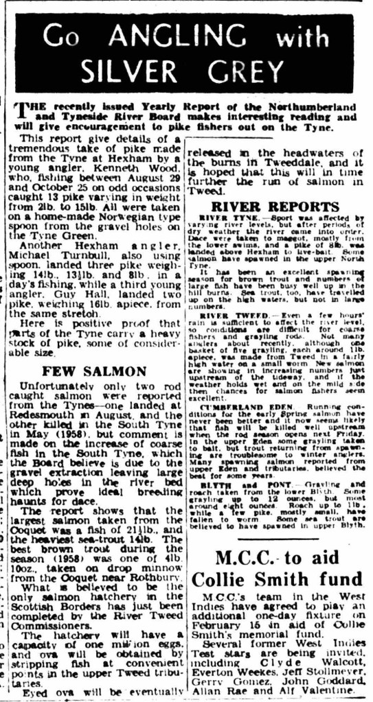 When my grandfather passed away, I started to research his contributions to the traditional angling press. I know he has had articles published in a number of magazines (many of which I am still looking for), but the most interesting article I came across was not written by him, but about him – potentially without him ever knowing. The following image is a snippet of page 37 of the Newcastle Evening Chronicle on the 8th of January, 1960.